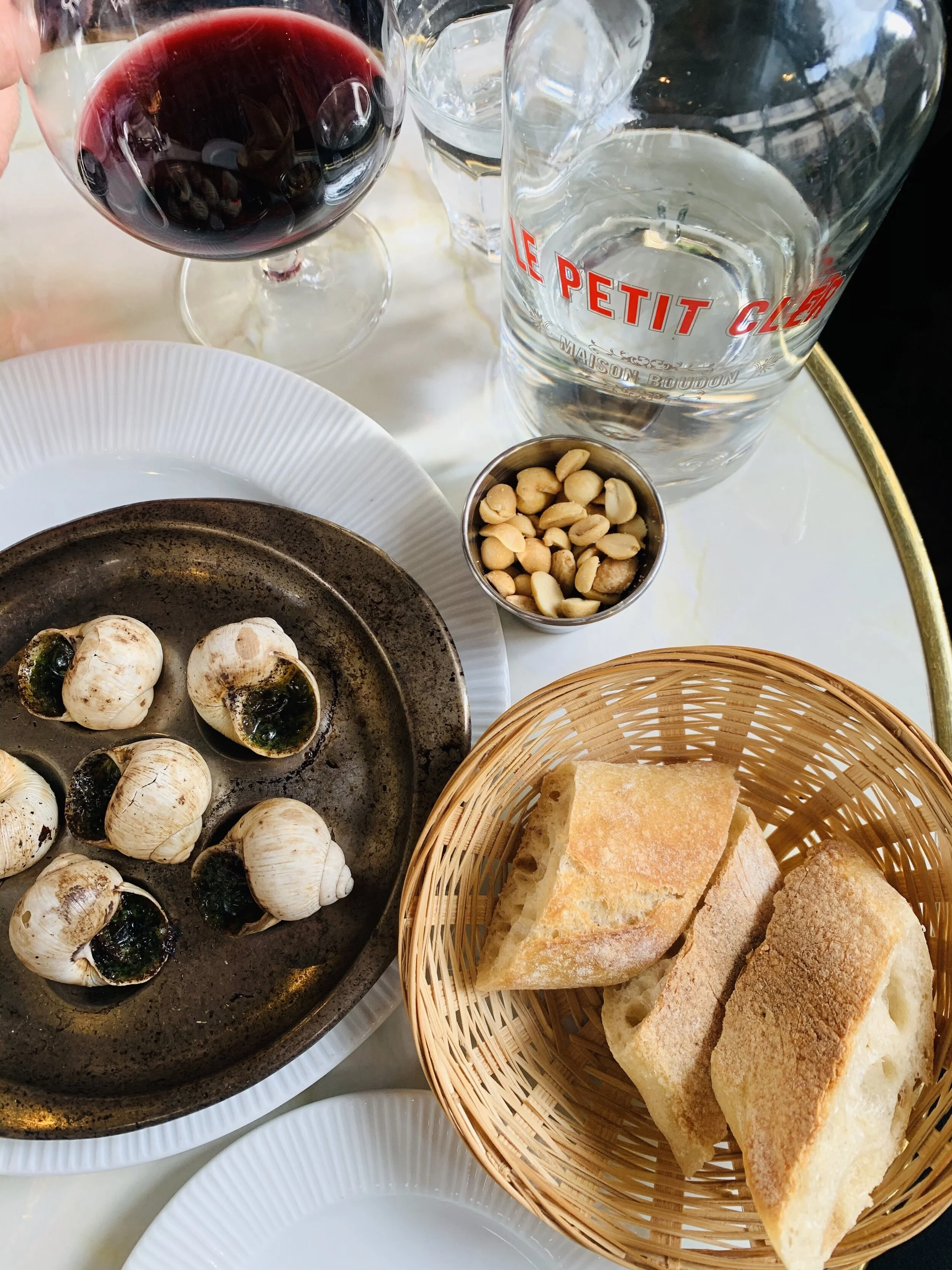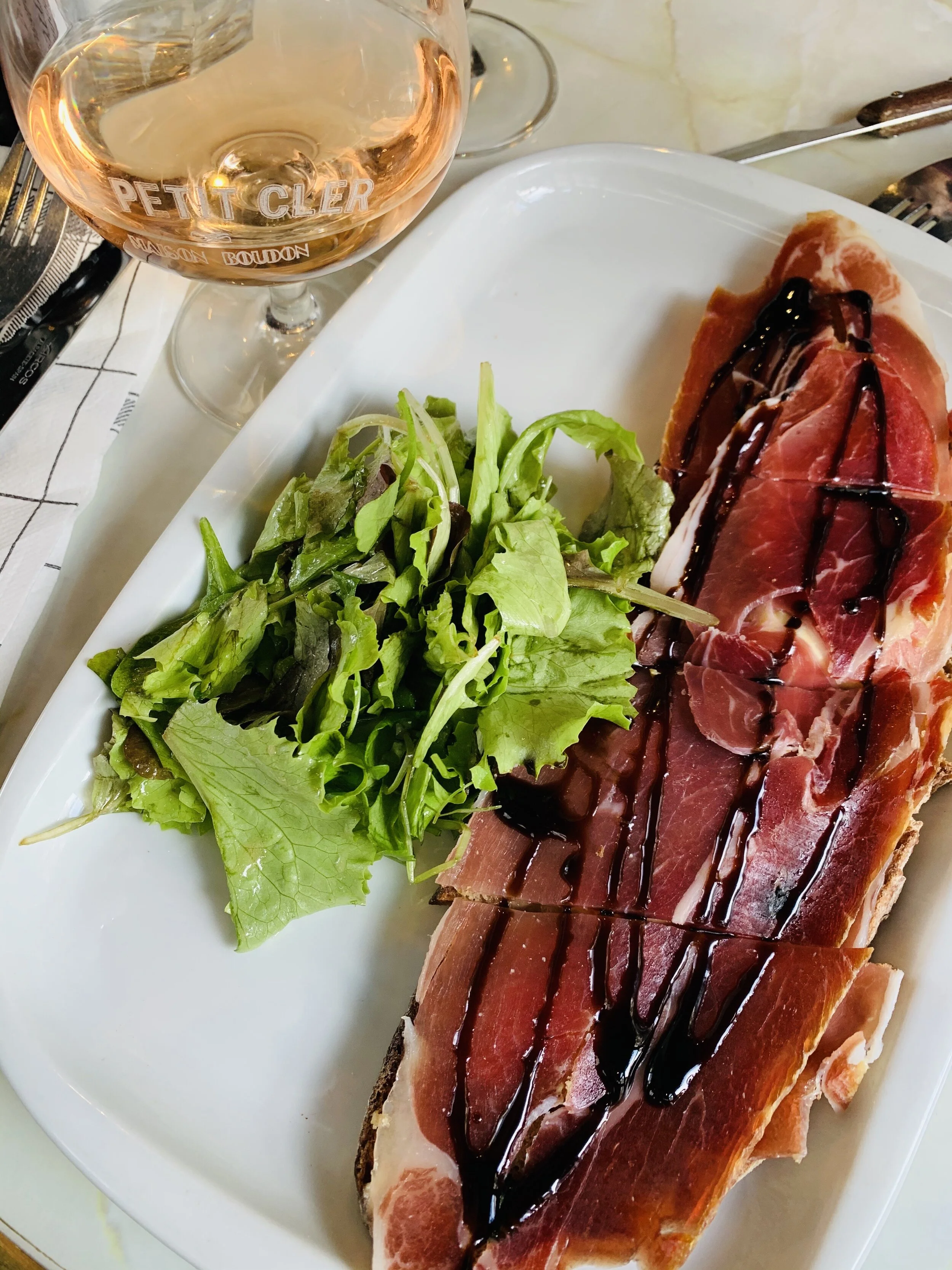Of course, we started with a glass of Rose’ and Bordeaux. The draw here are garlicky and delicious escargot, served piping hot. They also have a nice selection of Tartines De Pain, basically open-face sandwiches using high quality bread from the famous bakery Poilane.